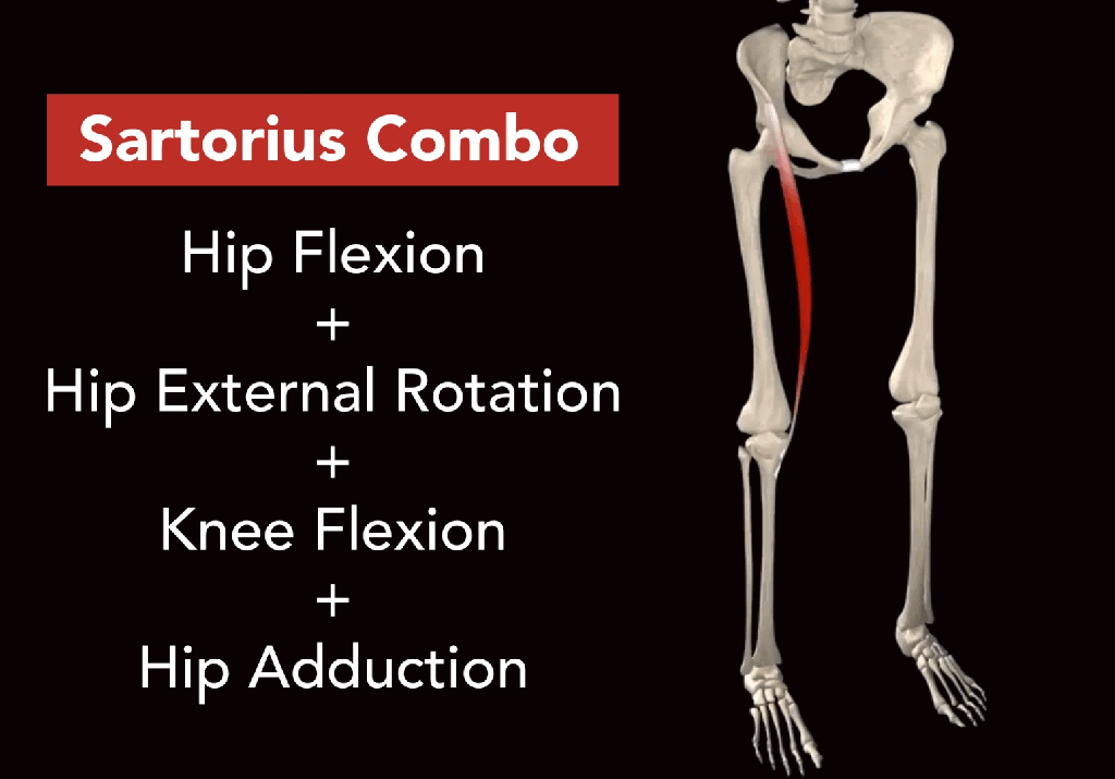 The secret then is to use combo exercises that work more than one of the Sartorius’s movements simultaneously in a way that no other muscle does!